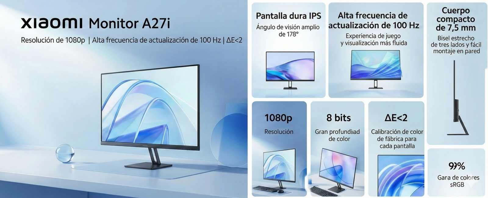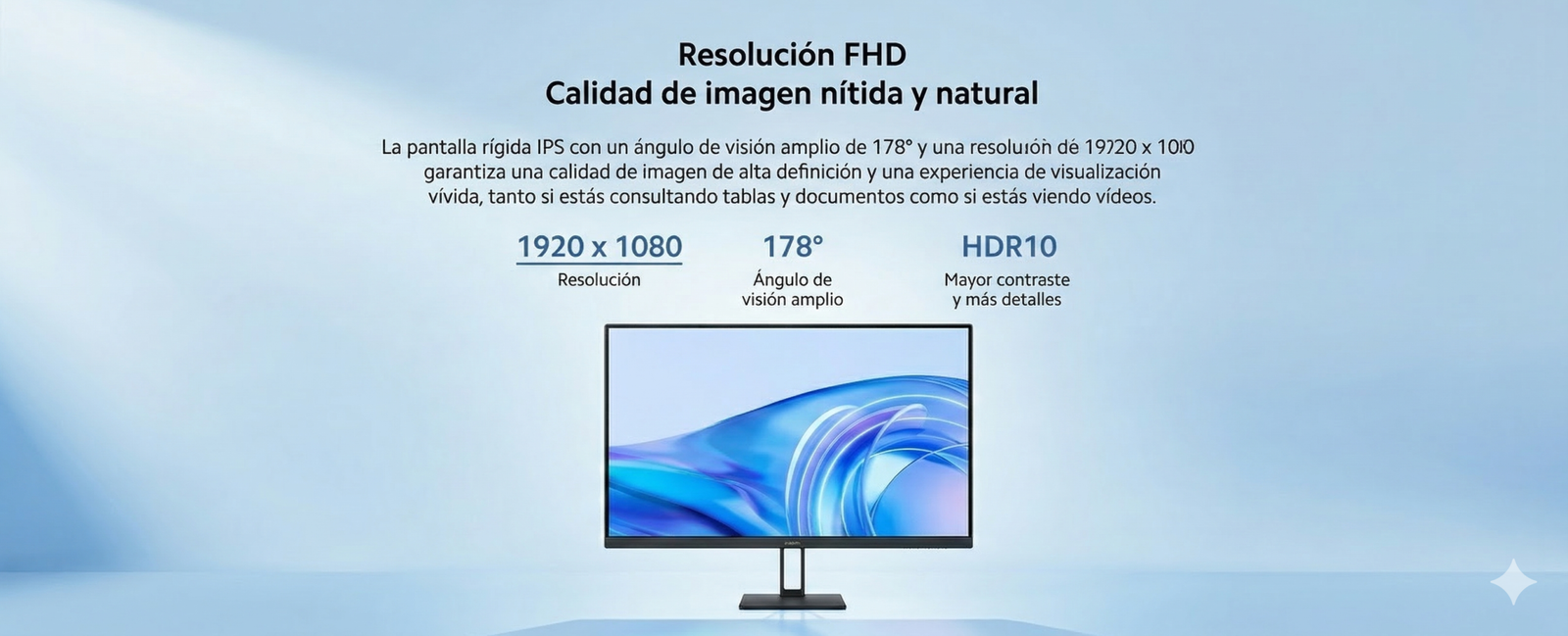 • Panel IPS Full HD: Disfruta de ángulos de visión de 178° y colores vibrantes que se mantienen precisos desde cualquier posición.