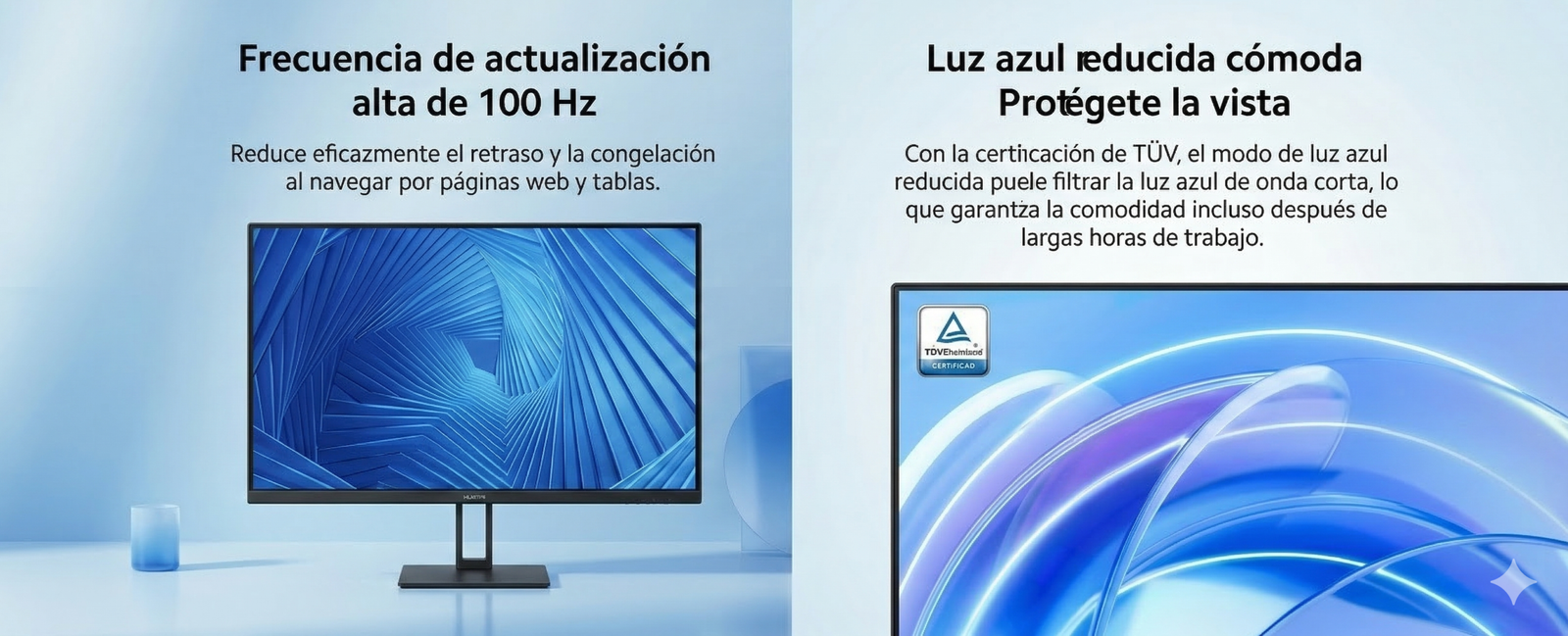 • Fluidez de 100Hz: Supera el estándar de los monitores comunes. Esta tasa de refresco elimina el rastro de movimiento, ideal para navegar por documentos infinitos o edición de video fluida.
